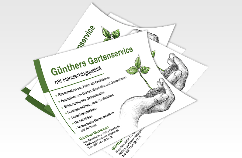 Ihre Geschäftsunterlagen sind der erste Eindruck, den ein Kunde von Ihrem Unternehmen erhält. Und dieser ist oftmals alles entscheidend. Wir helfen Ihnen gerne bei der Planung und optimalen grafischen Gestaltung Ihrer Print-Produkte.